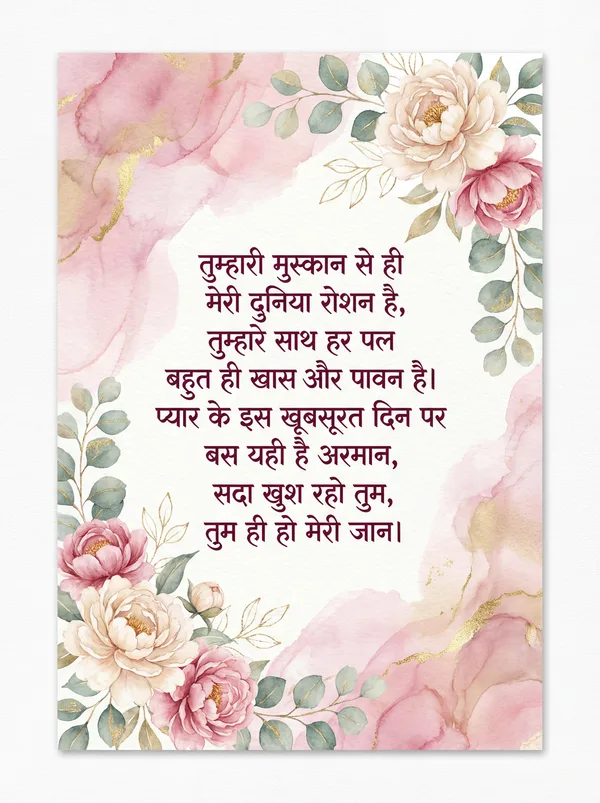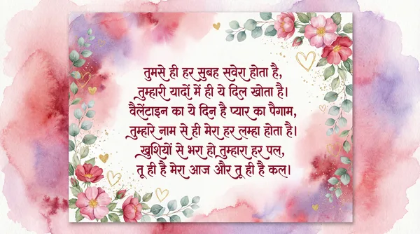 तुम्हारी मुस्कान से ही मेरी सुबह होती है, तुम्हारी बातों में ही मेरी दुनिया खोती है। वेलेंटाइन डे पर बस यही कहना है मुझे, तुमसे ही मेरी हर खुशी पूरी होती है।
