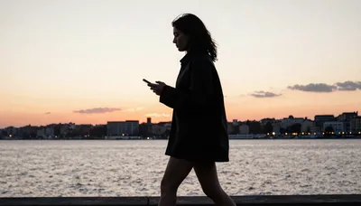 – La silueta de una mujer caminando por una calle urbana bañada por la cálida luz del atardecer.