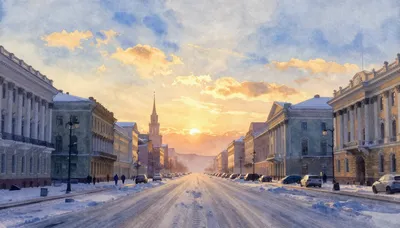 Puente urbano en acuarela al atardecer