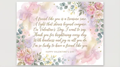 Through every season, thick and thin, A truer friend there’s never been. On Valentine’s, I want to say, You brighten every single day. I'm grateful for the bond we share, And for the way you're always there.
