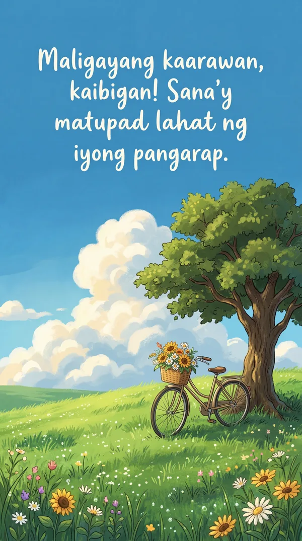 Maligayang kaarawan, kaibigan! Nawa'y maging puno ng ligaya ang iyong espesyal na araw.