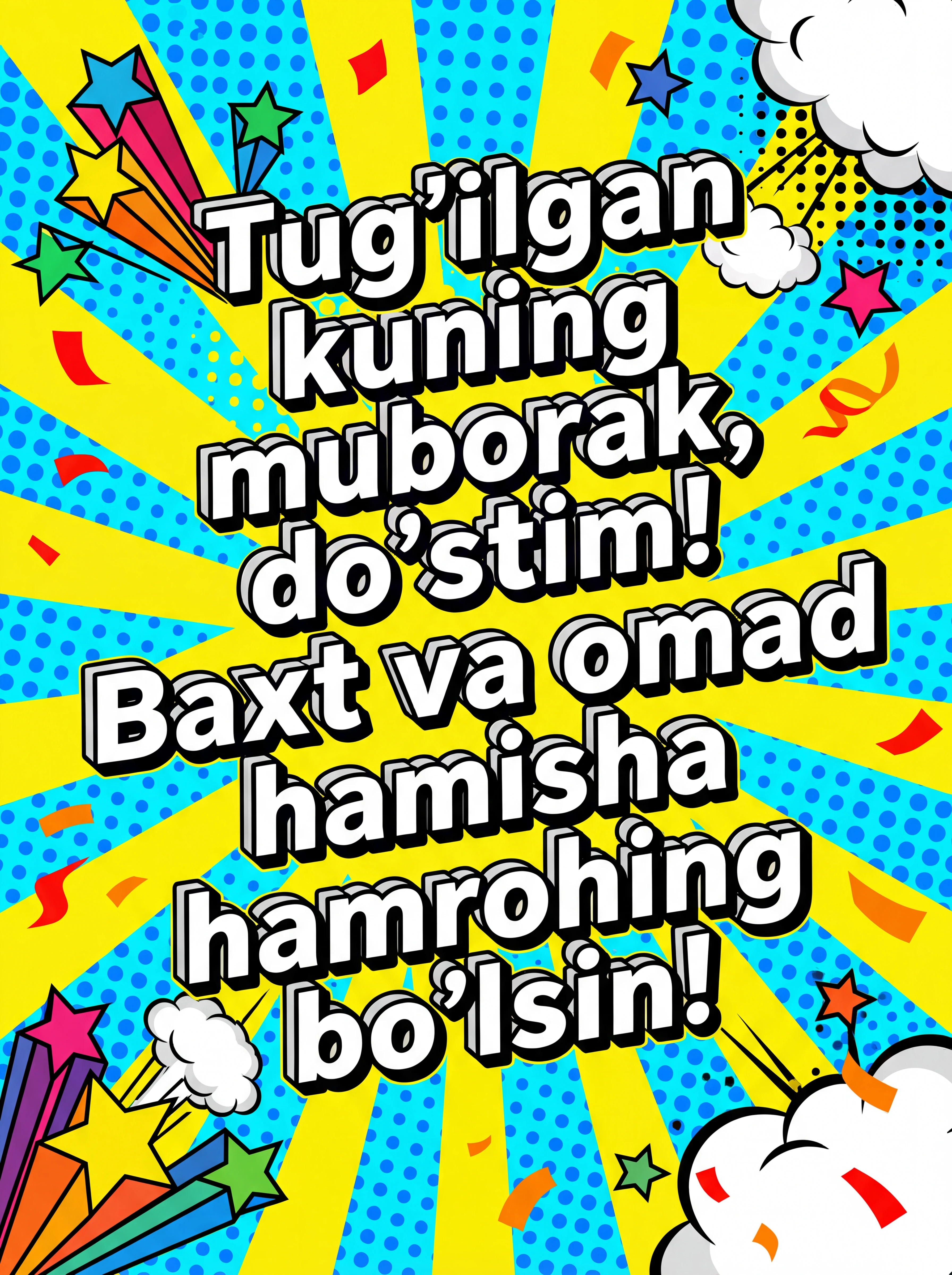 Tug'ilgan kuning muborak, do'stim! Baxt va omad hamisha hamrohing bo'lsin!