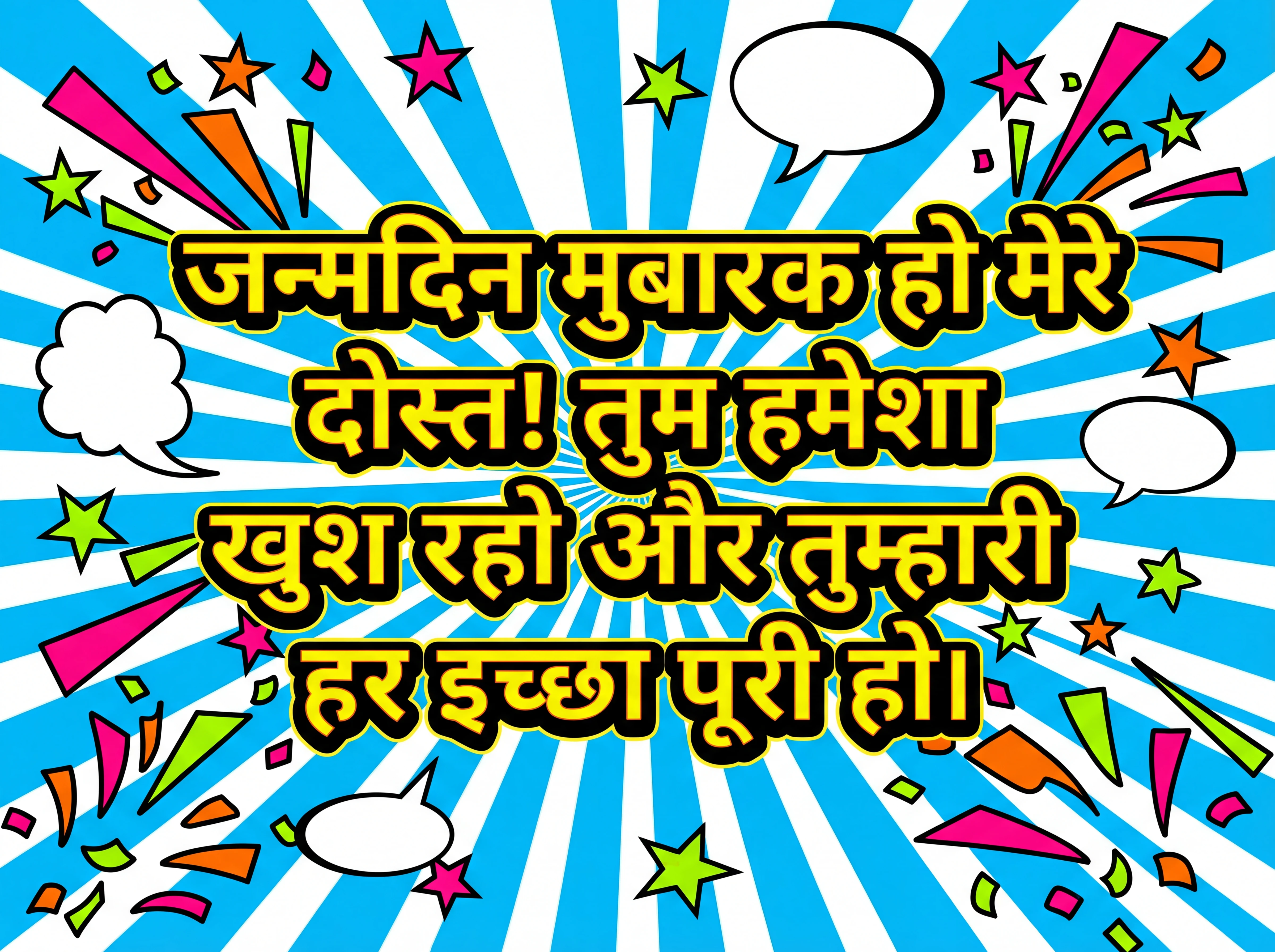 जन्मदिन मुबारक हो मेरे दोस्त! तुम हमेशा खुश रहो और तुम्हारी हर इच्छा पूरी हो।