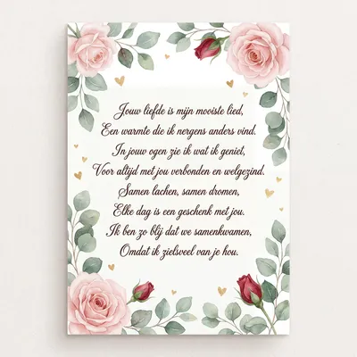 Jij bent de zon in mijn bestaan, Ik laat je nooit meer gaan. Mijn hart klopt enkel voor jou, Omdat ik zielsveel van je hou.