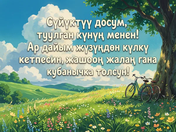 Туулган күнүң менен, досум! Ар дайым жүзүңдөн күлкү кетпесин, бактылуу бол!