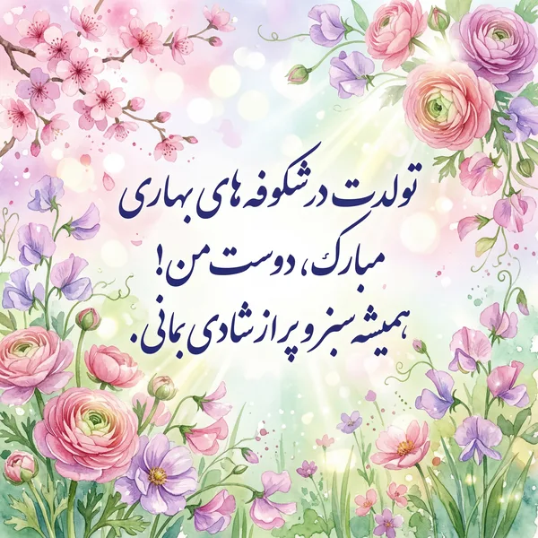بهارت پر از طراوت و لبخند! آرزوی روزهایی سبز و شاد برای تو دوست عزیزم.