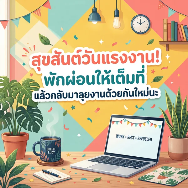 สุขสันต์วันแรงงาน! พักผ่อนให้เต็มที่ ขอบคุณที่เป็นเพื่อนร่วมงานที่ดี