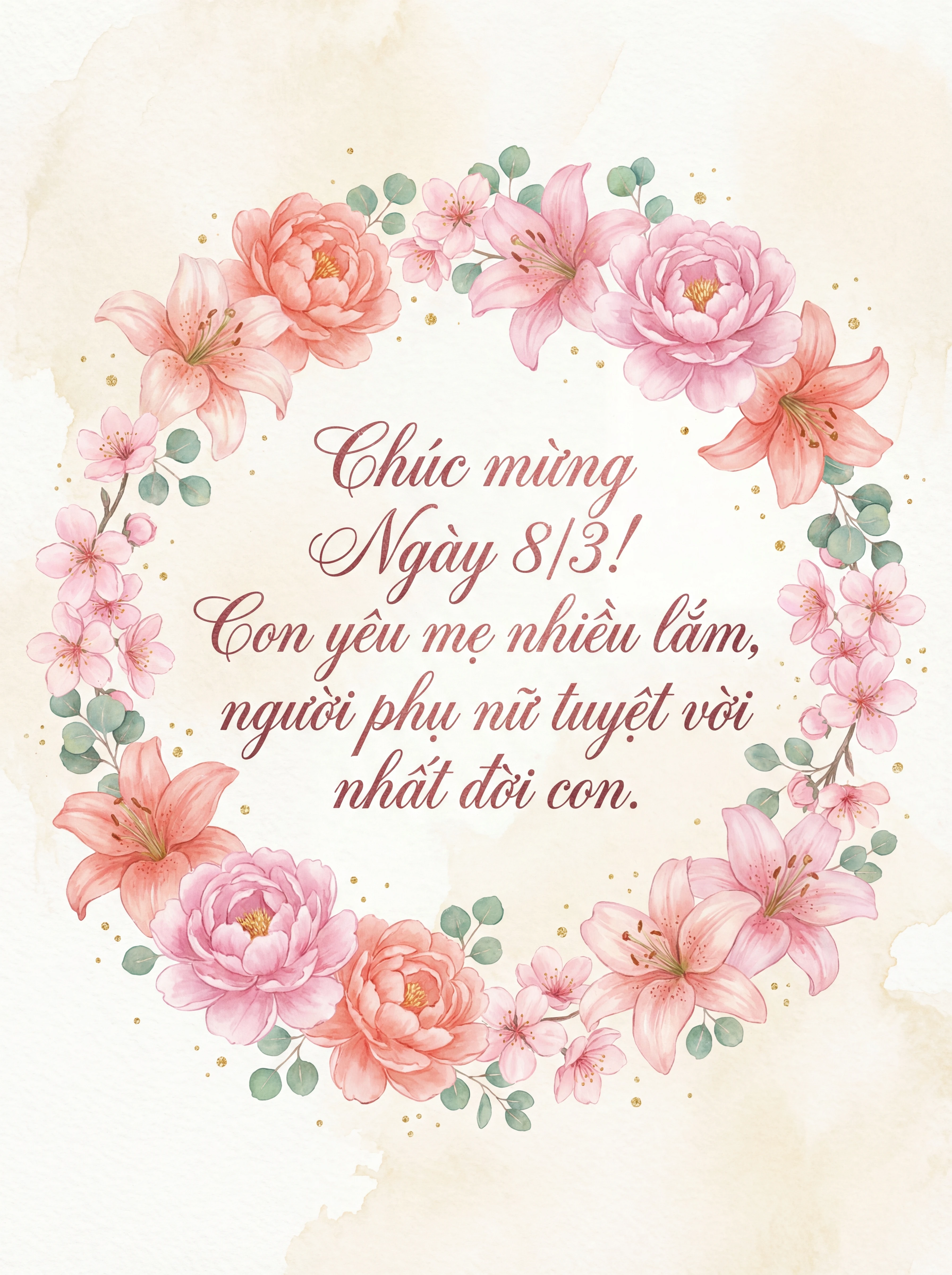 Chúc mừng Ngày 8/3! Con yêu mẹ nhiều lắm, người phụ nữ tuyệt vời nhất đời con.