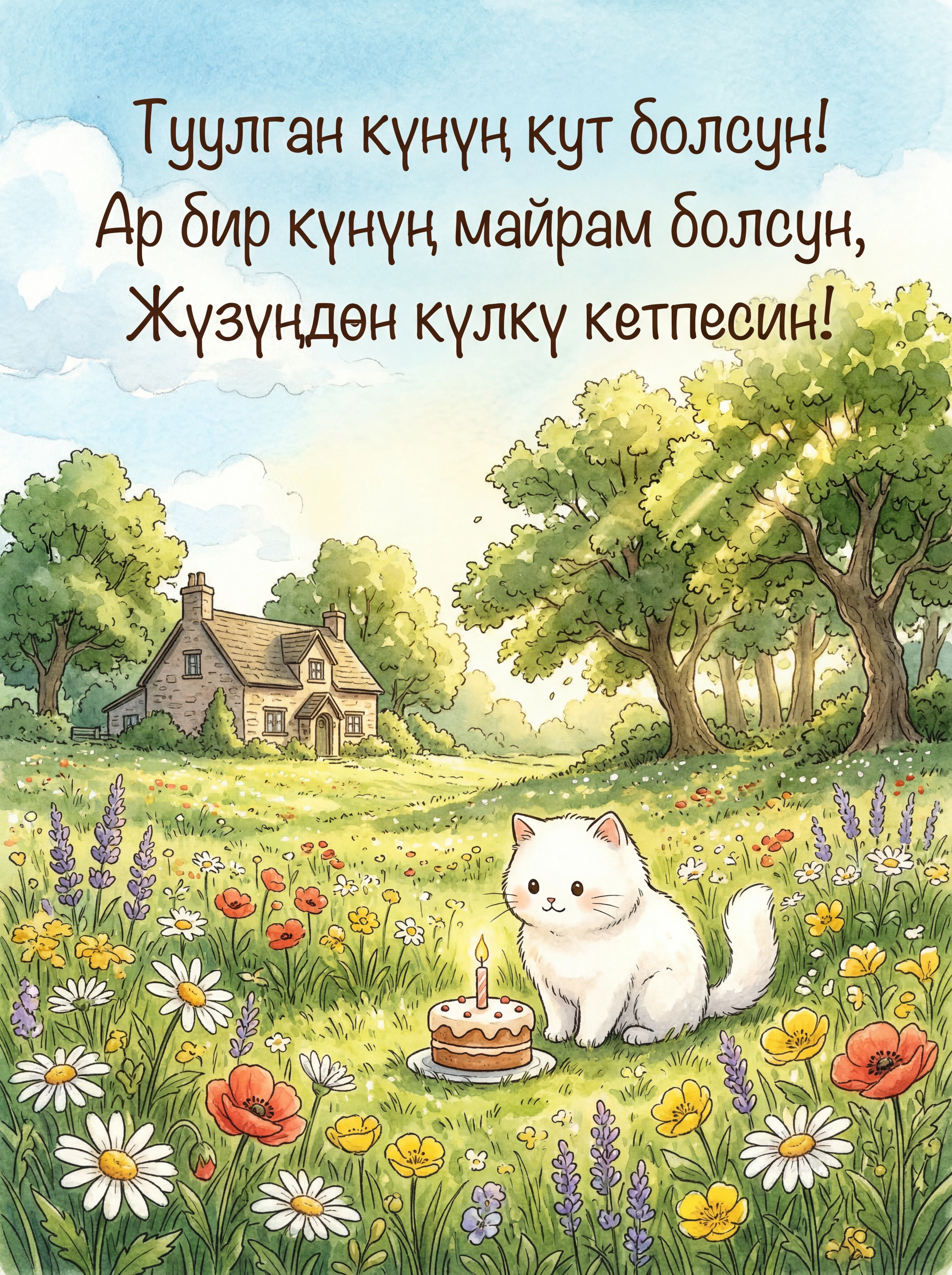 Туулган күнүң кут болсун! Ар бир күнүң майрам болсун, Жүзүңдөн күлкү кетпесин!