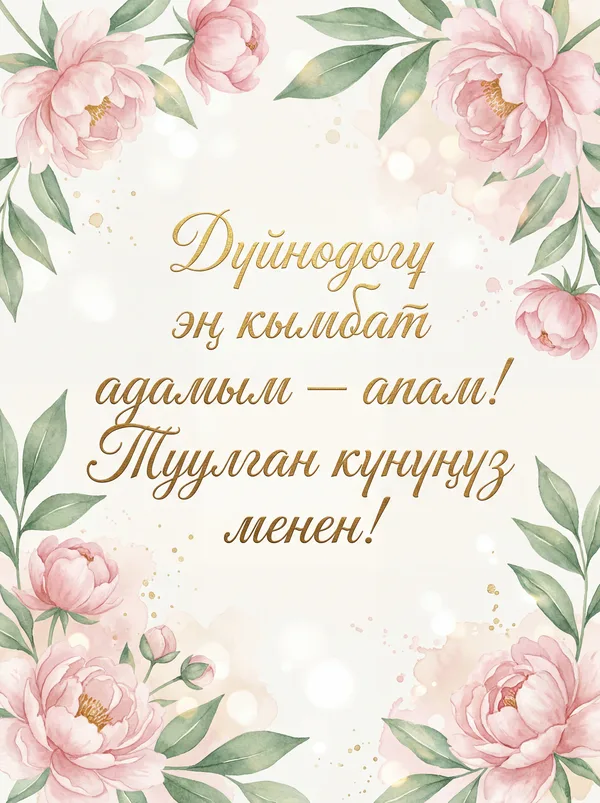 Дүйнөдөгү эң кымбатым, апакем, Туулган күнүң кут болсун, берекем. Ар дайым күлүп, жайнап жүрүңүз, Биздин бактыбызга бар болуңуз!