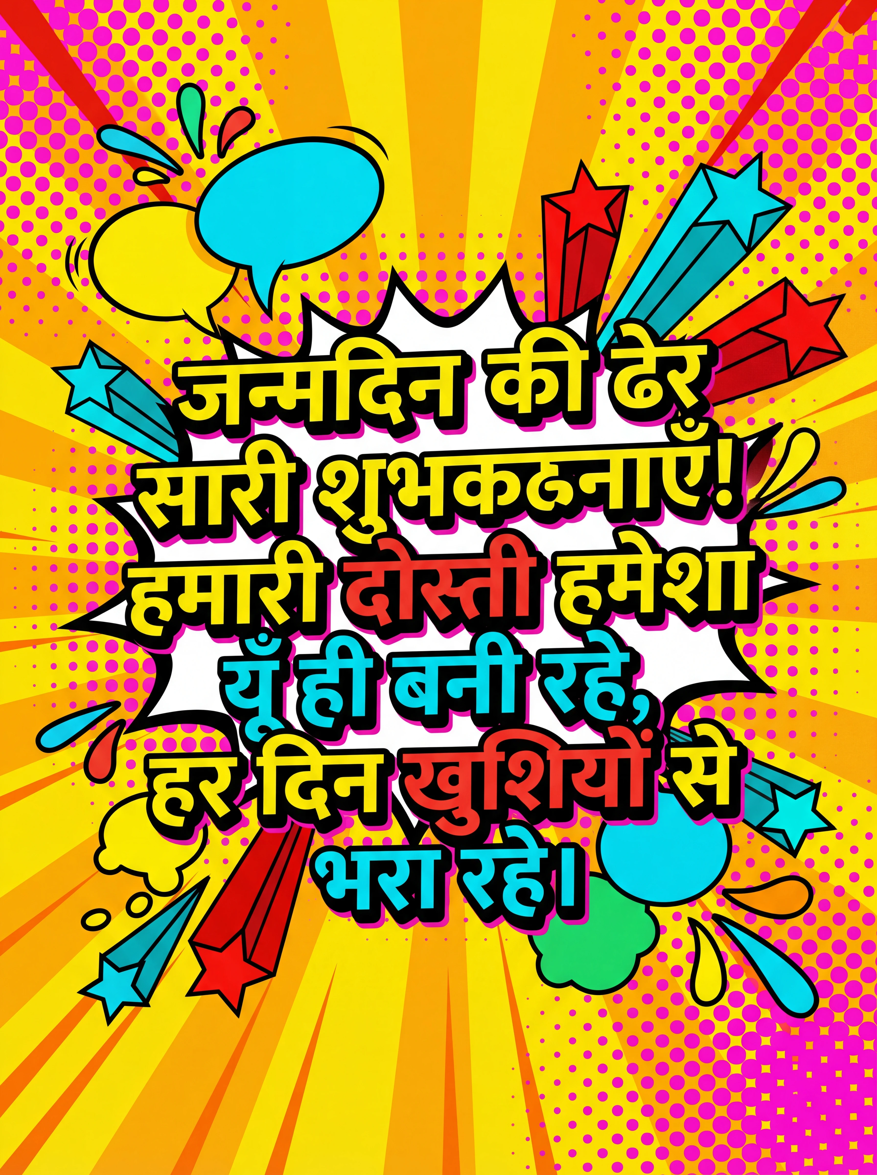 जन्मदिन की ढेर सारी शुभकामनाएँ! हमारी दोस्ती हमेशा यूँ ही बनी रहे, हर दिन खुशियों से भरा रहे।
