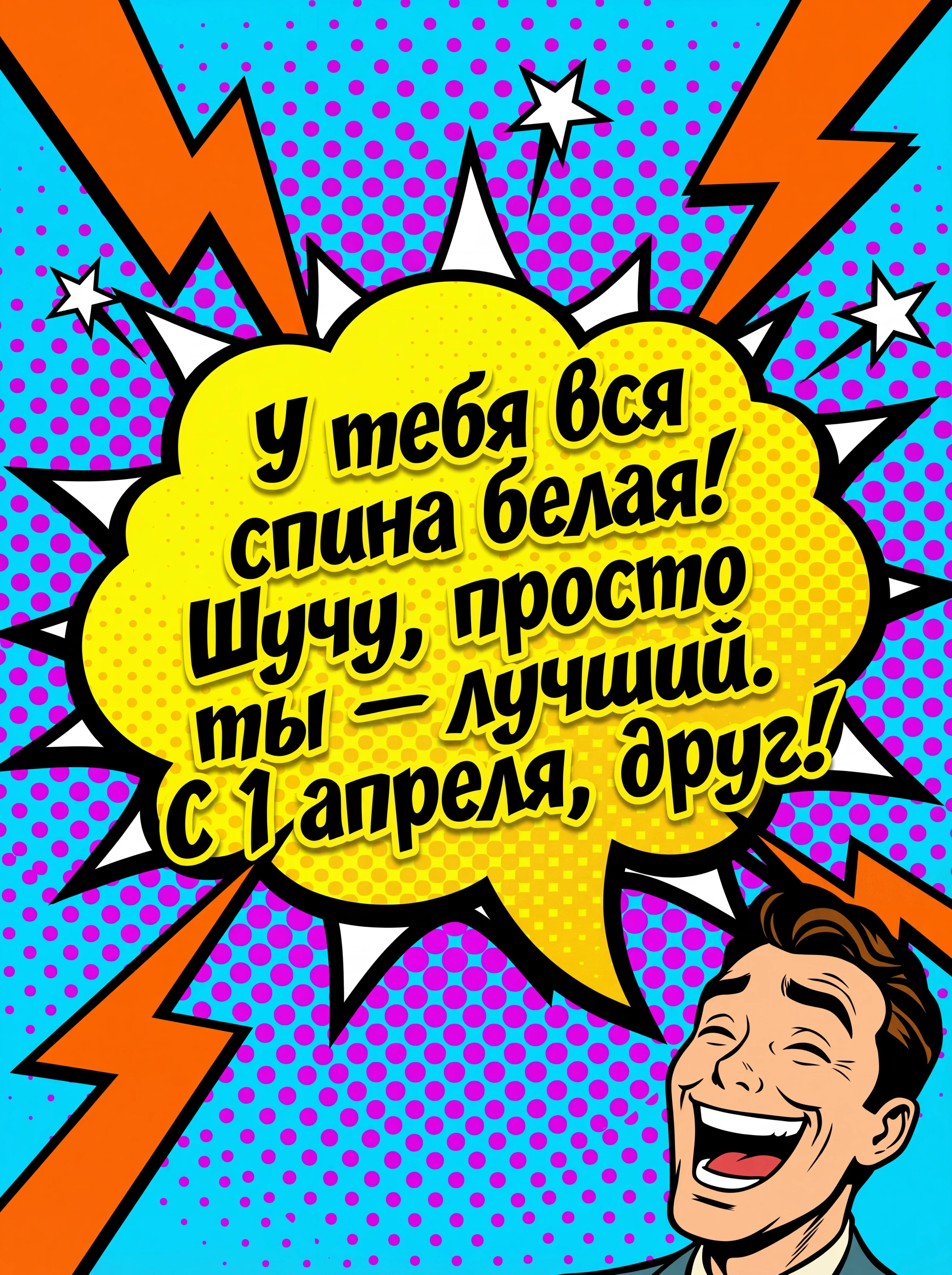 У тебя вся спина белая! Шучу, просто ты — лучший. С 1 апреля, друг!