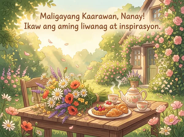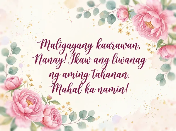 Maligayang Bati sa Iyong Kaarawan, Nanay! Ikaw ang aming liwanag at inspirasyon.