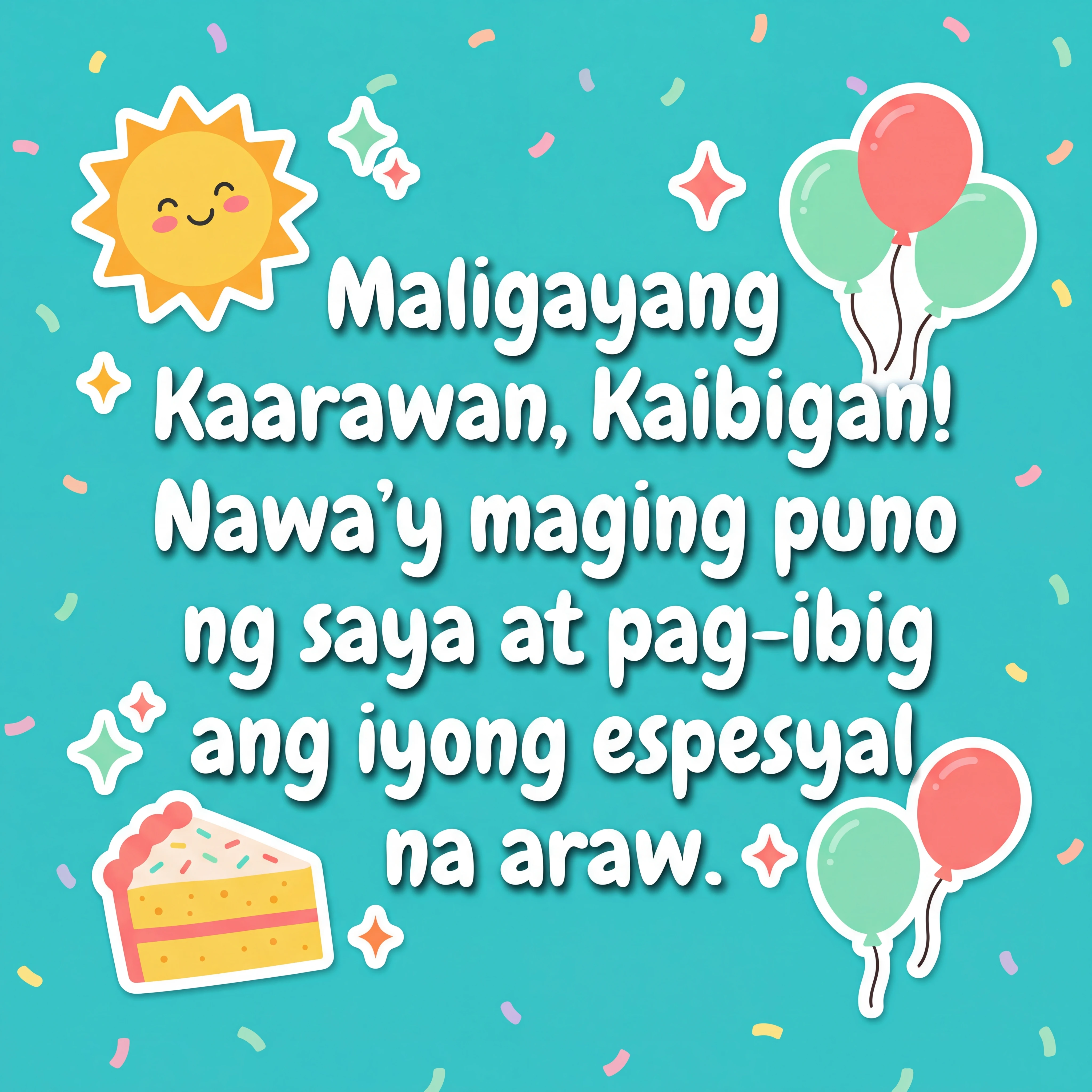 Maligayang Kaarawan, Kaibigan! Nawa'y maging puno ng saya at pag-ibig ang iyong espesyal na araw.