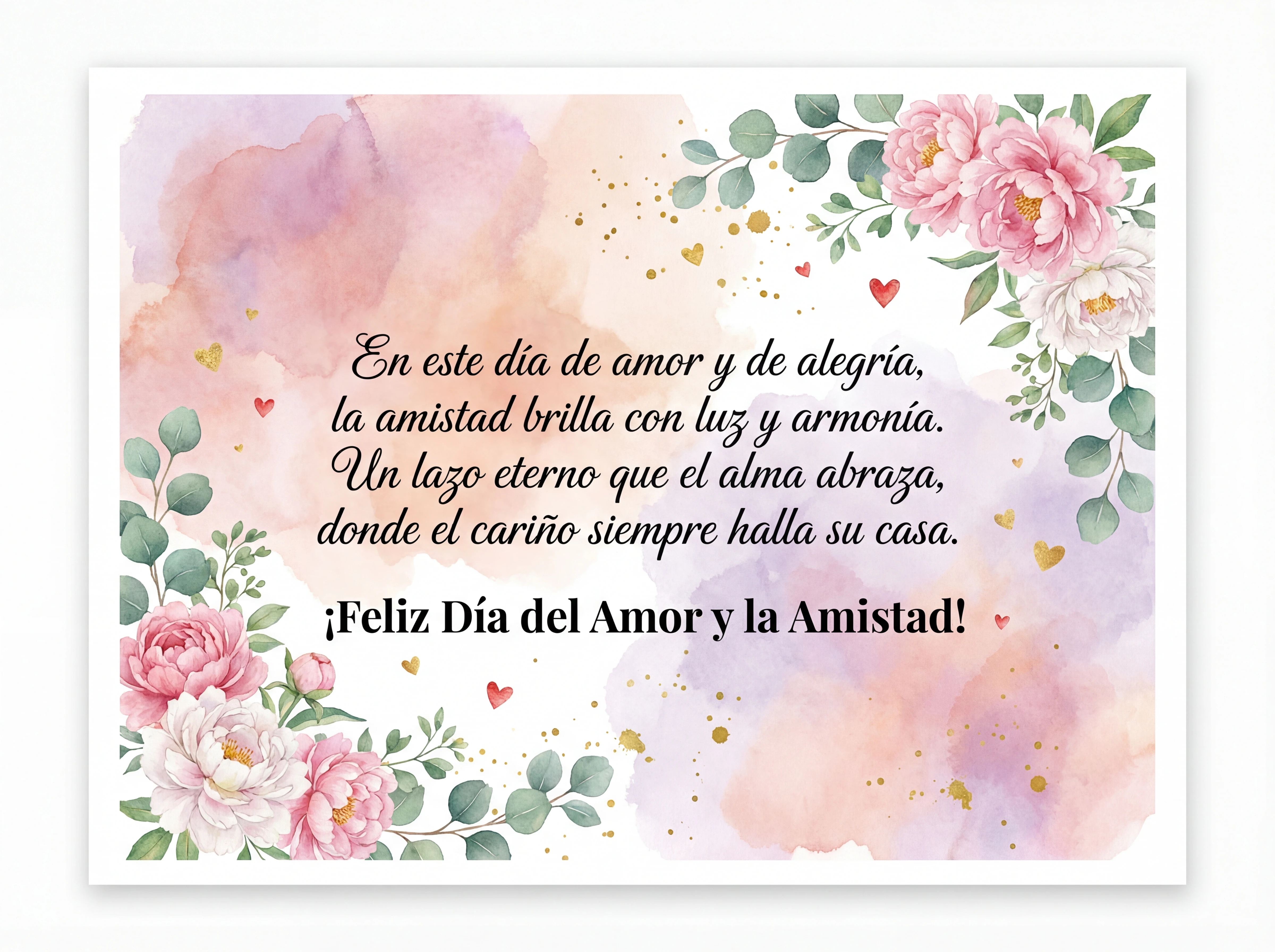 En este día de amor y de alegría, la amistad brilla con luz y armonía. Un lazo eterno que el alma abraza, donde el cariño siempre halla su casa. ¡Feliz Día del Amor y la Amistad!