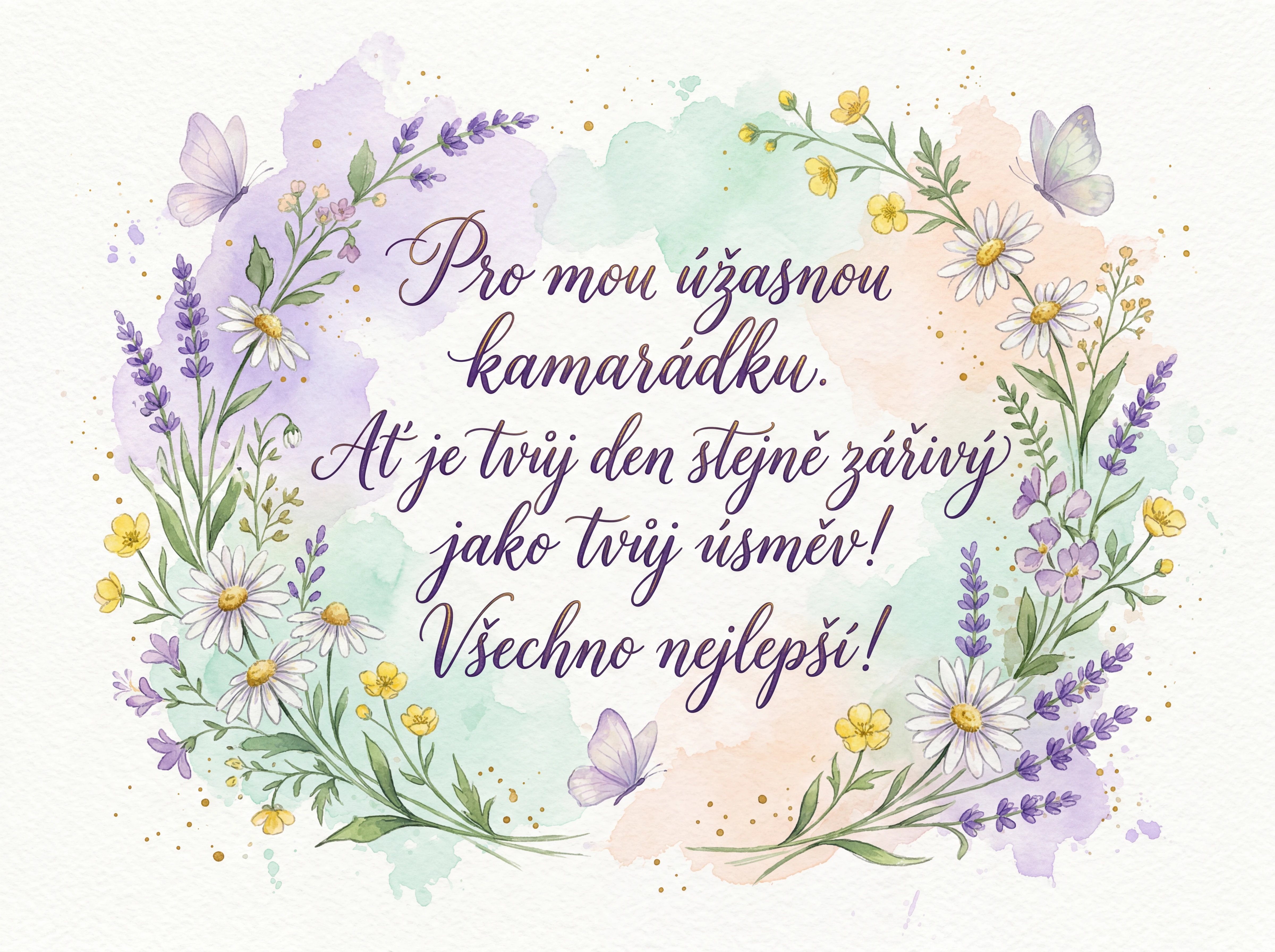 Pro mou úžasnou kamarádku. Ať je tvůj den stejně zářivý jako tvůj úsměv! Všechno nejlepší!