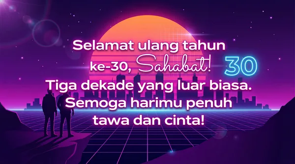 Selamat 30 Tahun, Sahabat! Semoga harimu penuh tawa dan petualangan baru.
