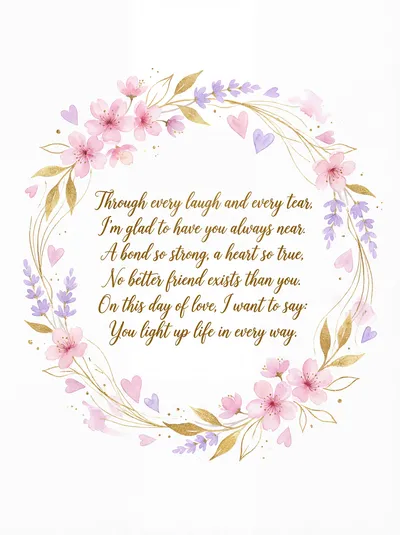 A bond of gold, a heart so true, I'm grateful for a friend like you. Through every laugh and every day, You brighten up the world in every way. Happy Valentine's Day!