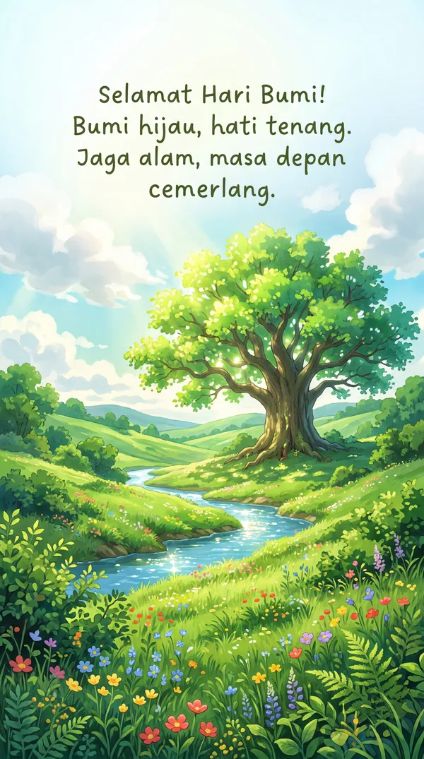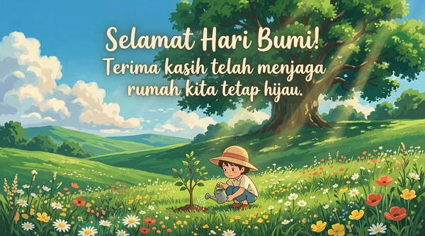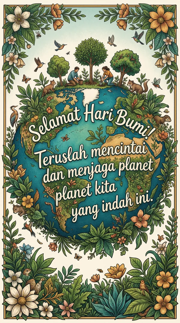 Selamat Hari Bumi untuk keluarga tercinta! Mari bersama menjaga rumah kita yang indah ini agar tetap hijau dan lestari untuk selamanya.