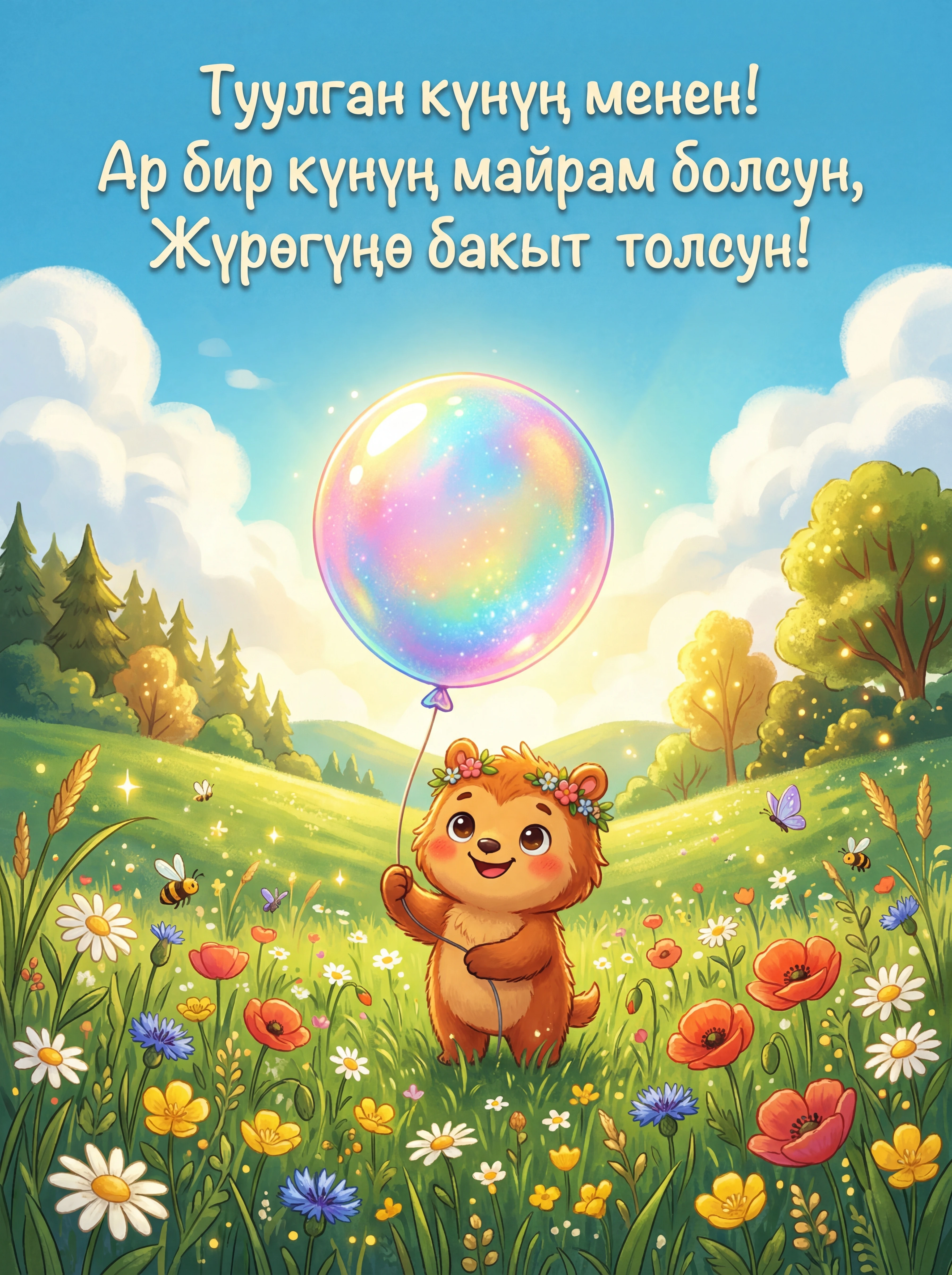 Туулган күнүң менен! Ар бир күнүң майрам болсун, Жүрөгүңө бакыт толсун!