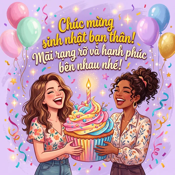 Chúc mừng sinh nhật bạn thân! Mãi mãi rạng rỡ, Hạnh phúc và thành công nhé!