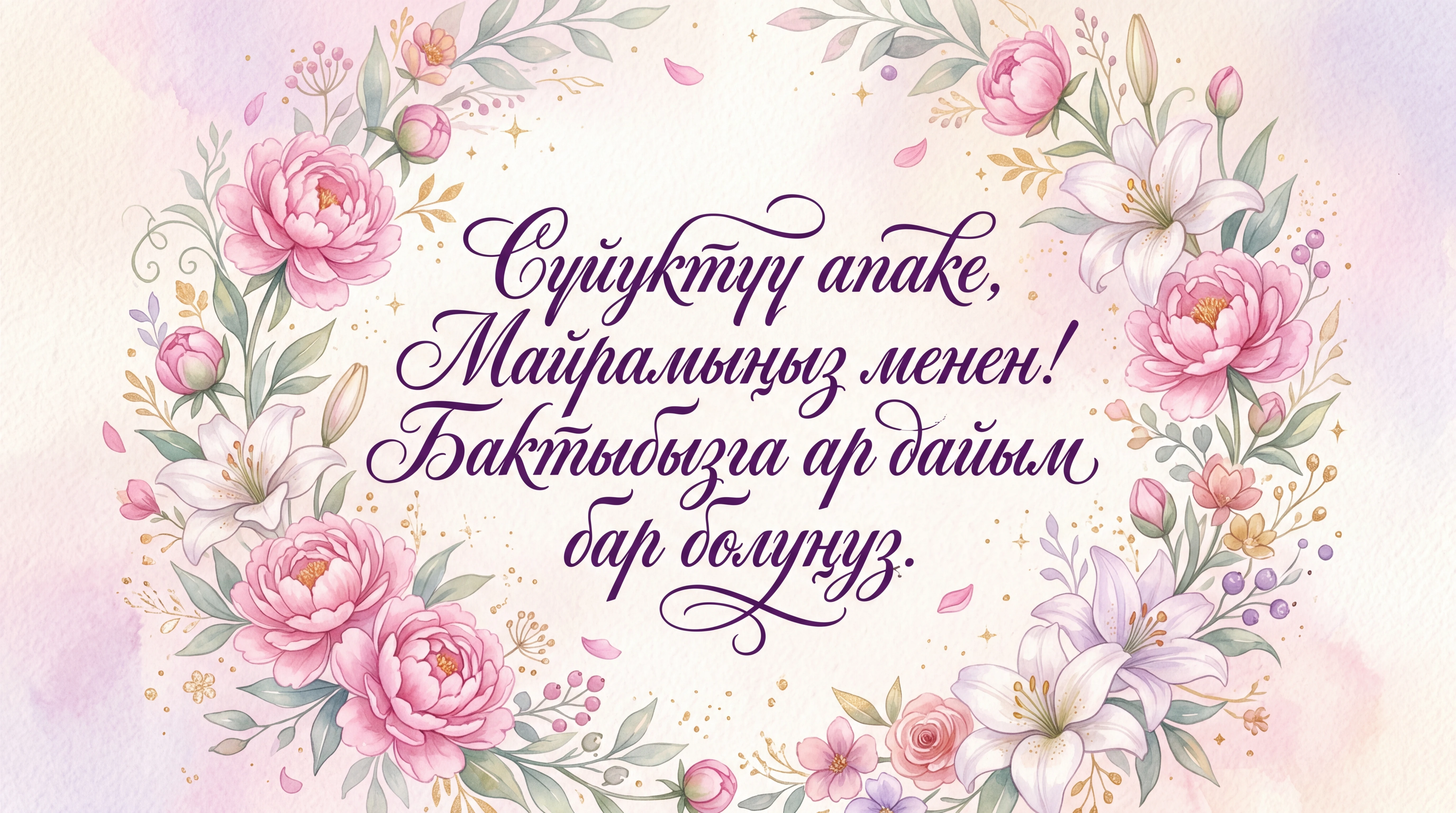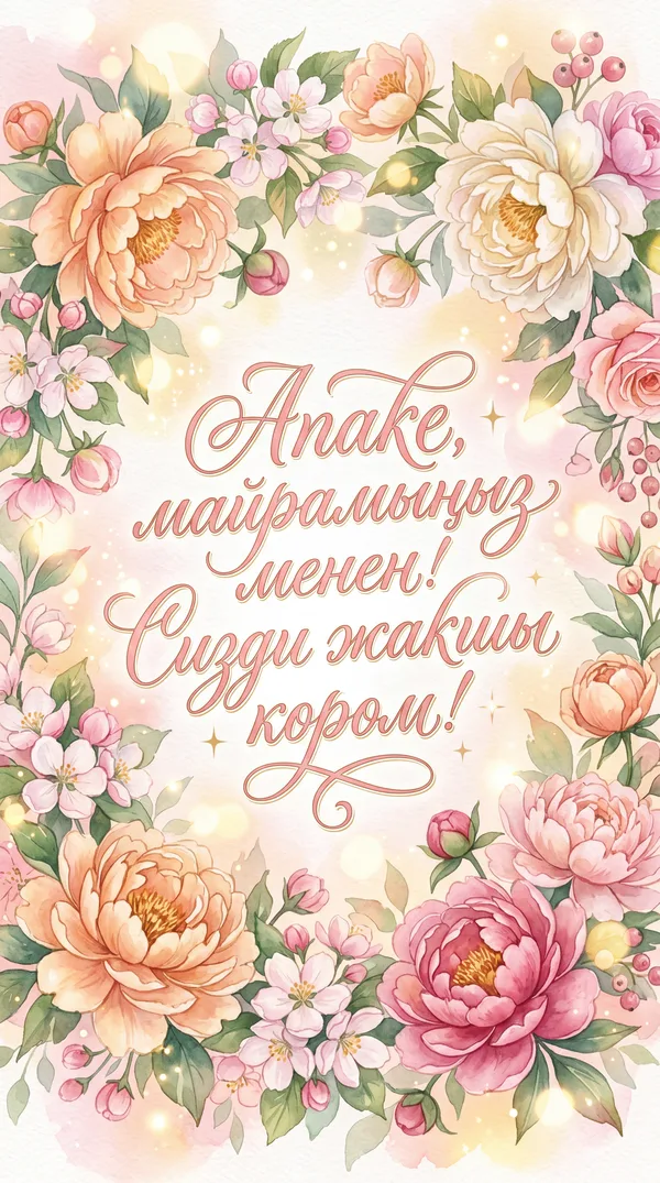 Сүйүктүү апаке, Майрамыңыз менен! Бактыбызга ар дайым бар болуңуз.