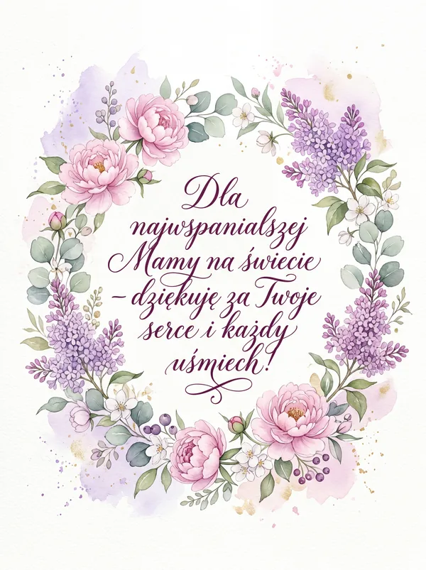 Dla najwspanialszej Mamy, niech każdy dzień będzie pełen słońca i uśmiechu. Wszystkiego najlepszego!