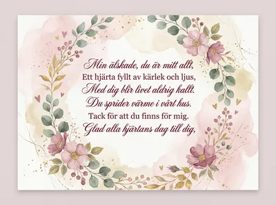 Du är min sol, mitt allt, min vän, Jag älskar dig igen och igen. På denna dag vi firar vår tro, Där kärleken alltid får gro. Du är hjärtat i mitt liv, Med dig blir varje stund ett kliv.
