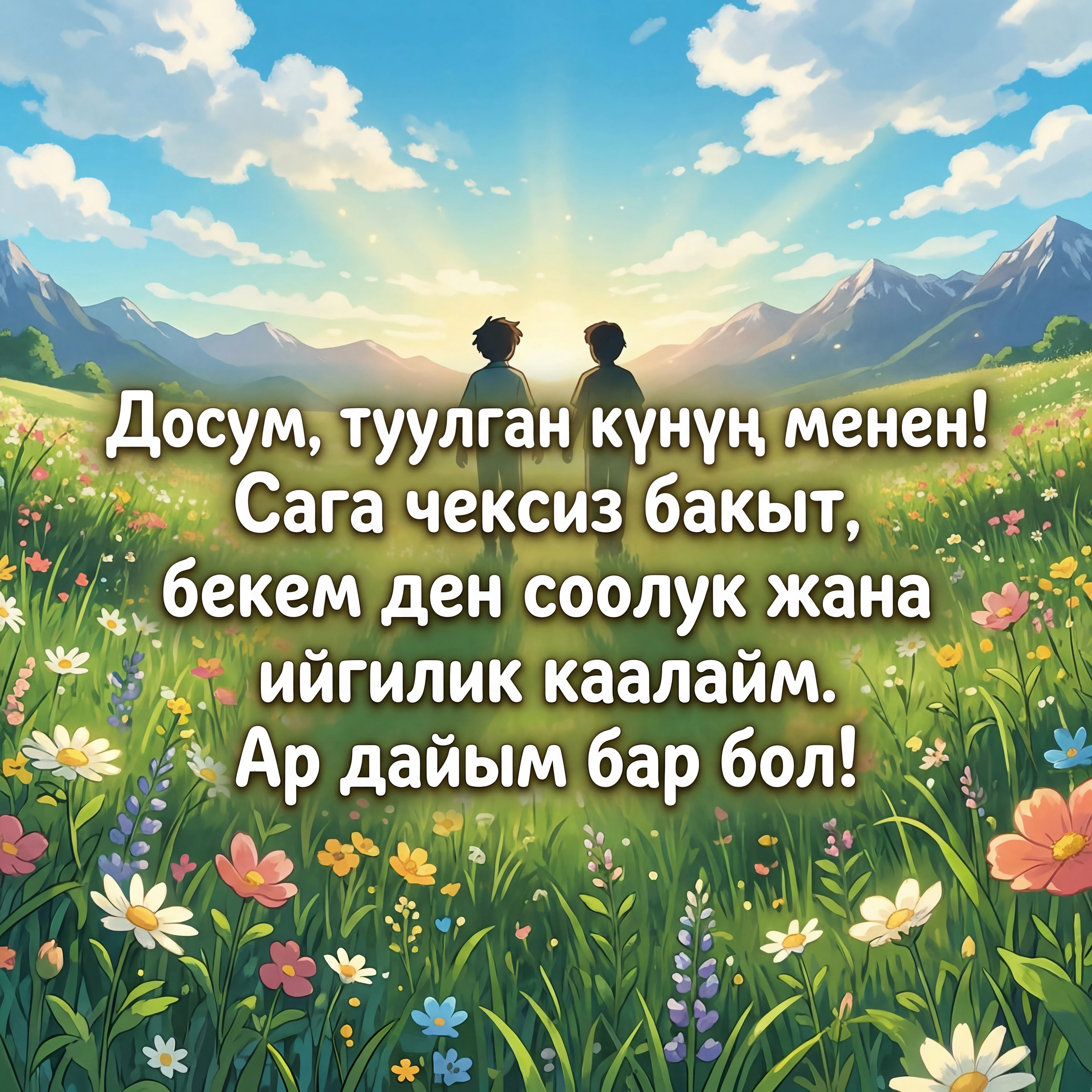 Досум, туулган күнүң менен! Сага чексиз бакыт, бекем ден соолук жана ийгилик каалайм. Ар дайым бар бол!
