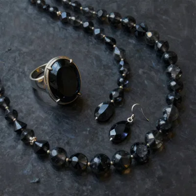 – جواهرات دارای سنگهای قیمتی سیاه مانند اونیکس، ابسیدین یا تورمالین سیاه.