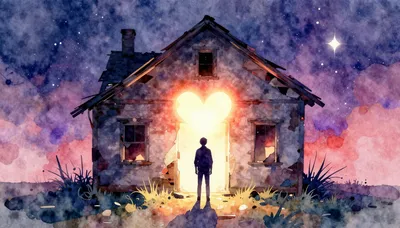 – دوستانی که به سمت خانهای مرموز با نوری گرم و سایهای در داخل آن حرکت میکنند.