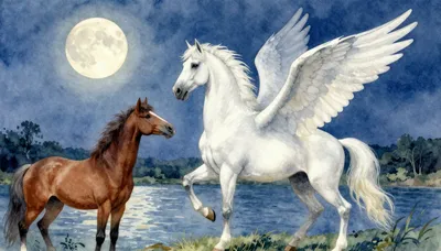 – تصاویر هنری با تمرکز بر اسب بالدار افسانهای، پگاسوس.