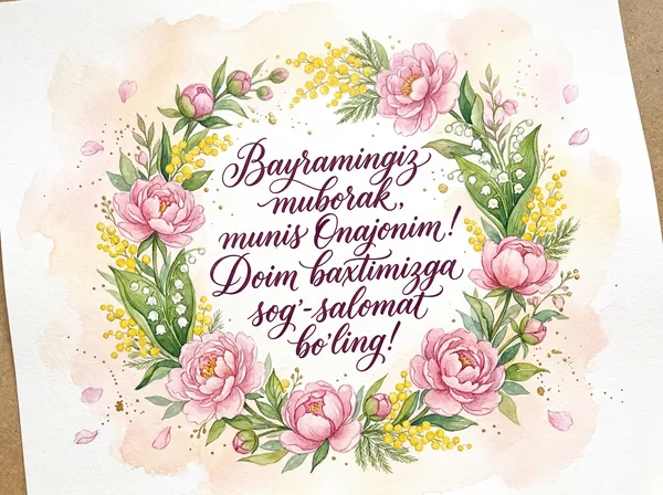 Siz dunyodagi eng go'zal va mehribon ayolsiz. Bayramingiz muborak bo'lsin, aziz Onajonim!