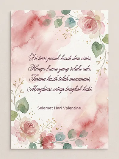Di hari kasih sayang yang indah ini, Cintaku tulus hanya untukmu sendiri. Engkaulah pelangi di dalam hati, Menghiasi hari dengan janji suci. Semoga bahagia selalu menyertai kita, Dalam dekapan kasih yang takkan sirna.