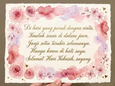 Di hari yang indah penuh cinta, Hati berbunga mekar sentiasa, Kasih sayang mekar di jiwa, Bersamamu bahagia selamanya.