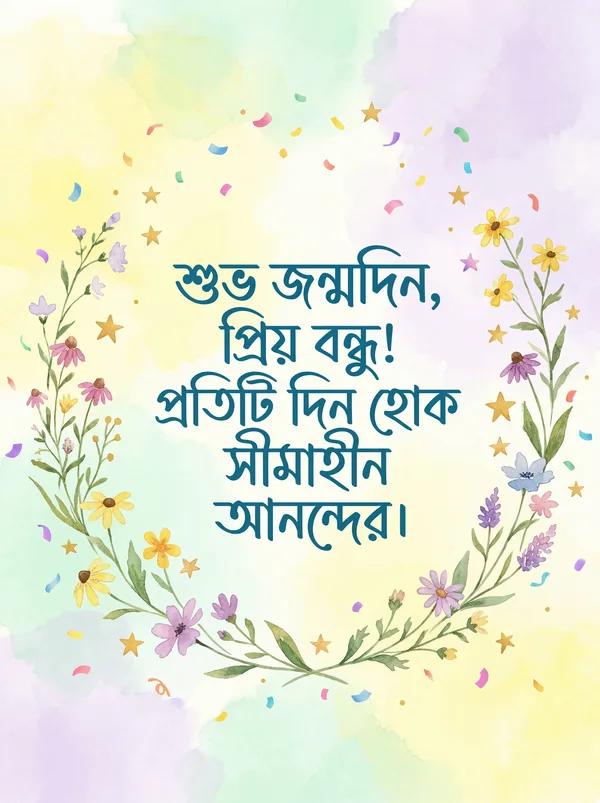 শুভ জন্মদিন, প্রিয় বন্ধু! তোমার প্রতিটি দিন আনন্দ আর ভালোবাসায় ভরে উঠুক।