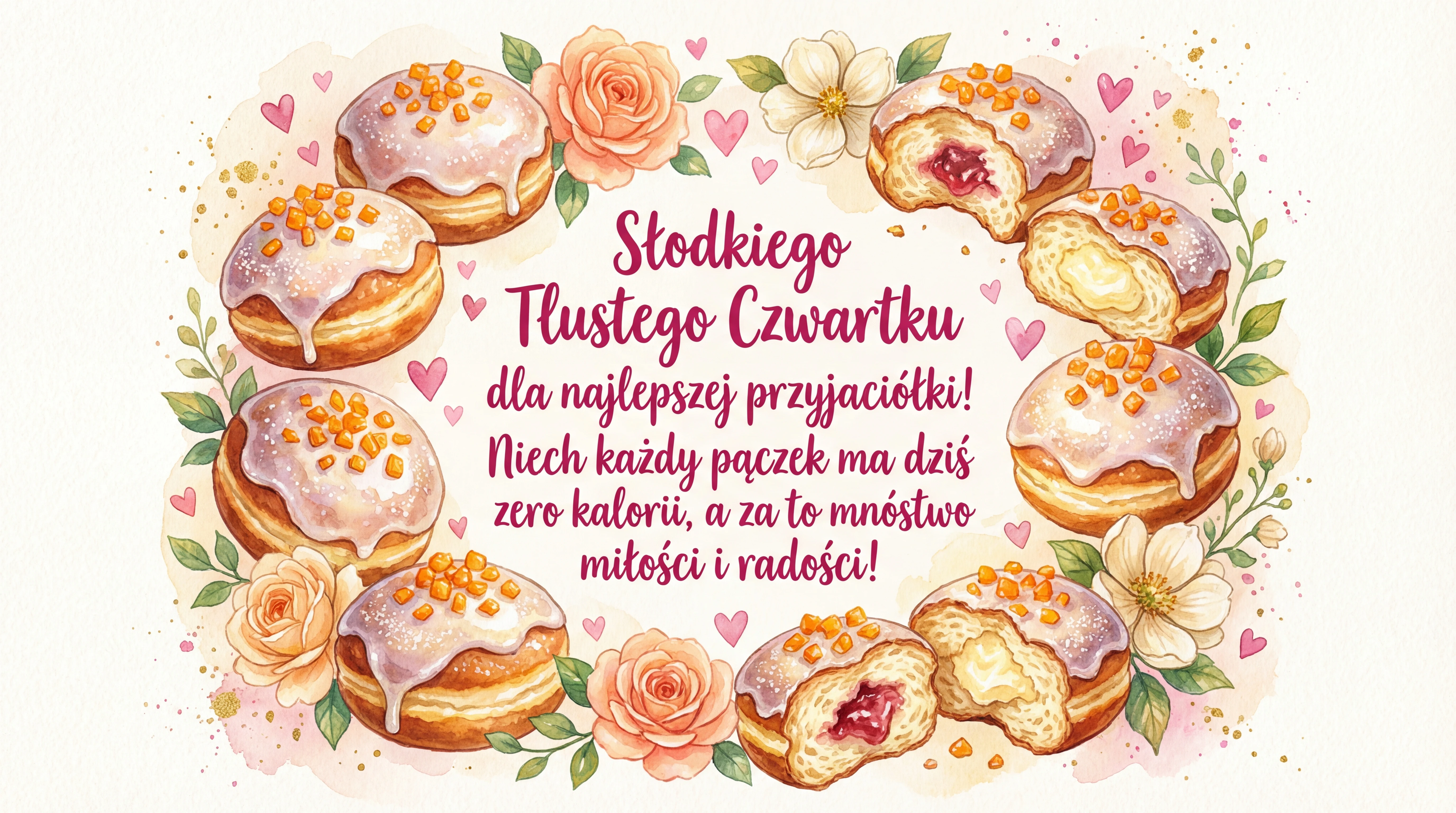 Słodkiego Tłustego Czwartku dla najlepszej przyjaciółki! Niech każdy pączek ma dziś zero kalorii, a za to mnóstwo miłości i radości!
