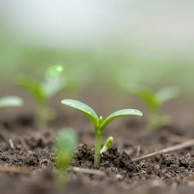 – תמונות תקריב של נבטים ירוקים קטנים עם זוהר מיסטי או אפקטים של אור קסום.