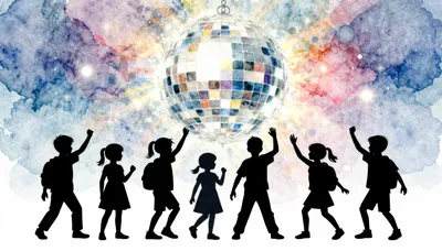 – ילדים באנימציה רוקדים בסגנון היפ-הופ במגרש משחקים.