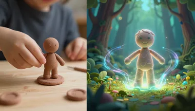 – एक जादुई जिन्न चमकती धूल के साथ रसोई की एक साधारण वस्तु को बदल रहा है, जो अद्भुत दृश्य पैदा करता है।