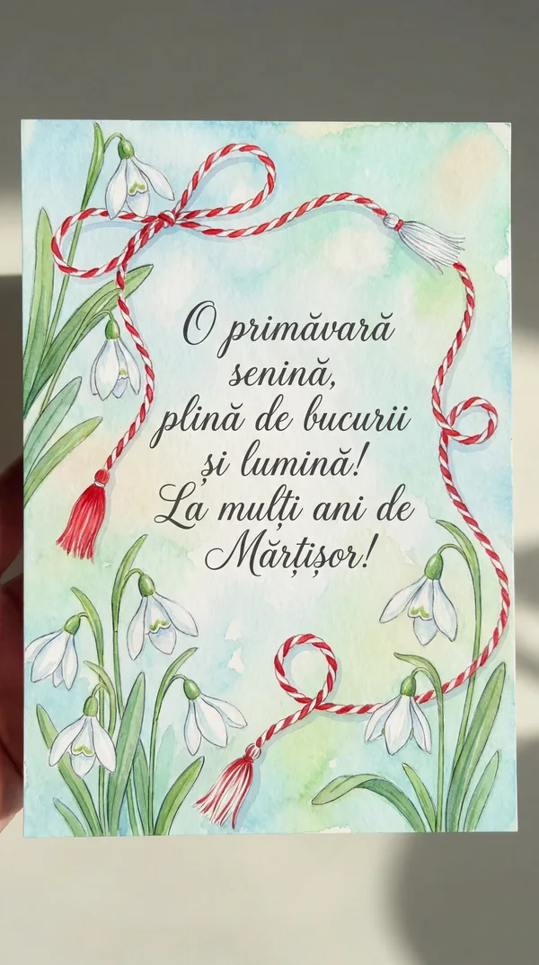 Cu fir de alb și roșu împletit, Un mărțișor în dar ți-am pregătit, Să-ți aducă-n suflet primăvară, Și bucuria s-o simți iară. Zâmbește soarelui ce-a răsărit!
