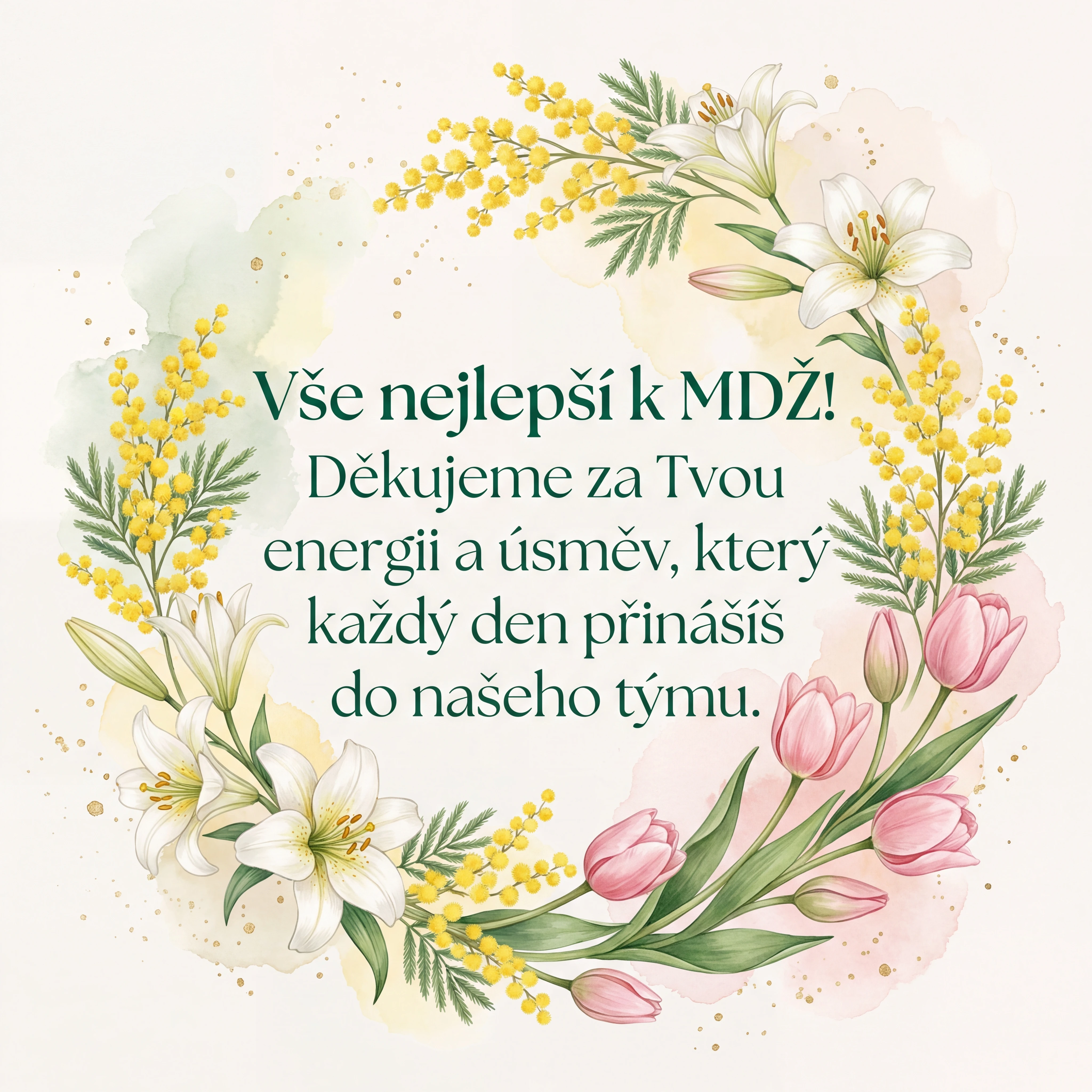 Vše nejlepší k MDŽ! Děkujeme za Tvou energii a úsměv, který každý den přinášíš do našeho týmu.