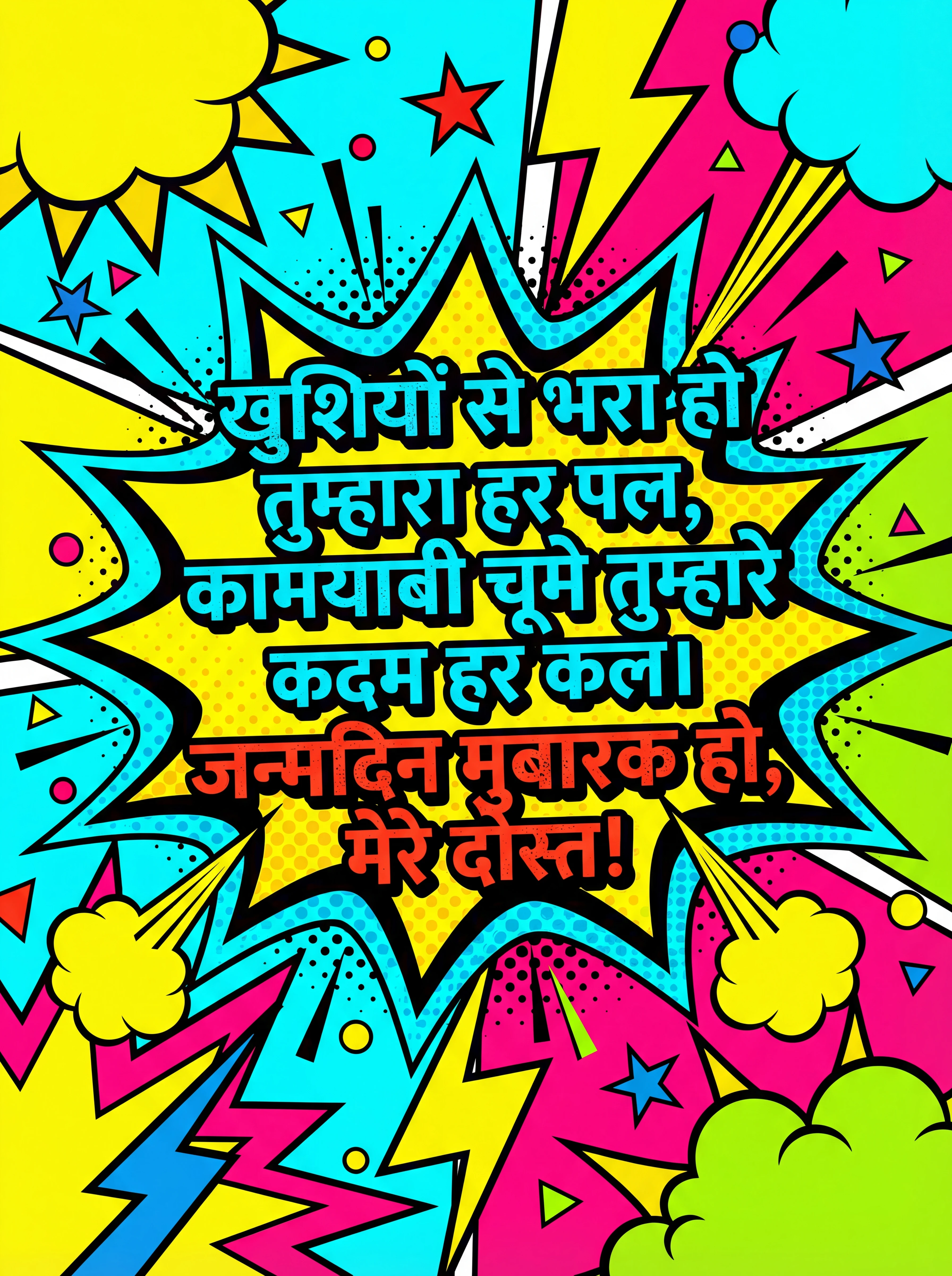 खुशियों से भरा हो तुम्हारा हर पल, कामयाबी चूमे तुम्हारे कदम हर कल। जन्मदिन मुबारक हो, मेरे दोस्त!