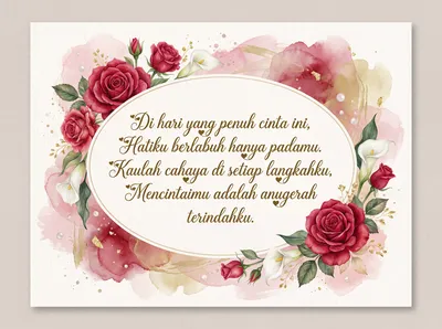 Di hari kasih sayang yang indah ini, Cintaku tulus hanya untukmu sendiri. Engkaulah pelangi di dalam hati, Menghiasi hari dengan janji suci. Semoga bahagia selalu menyertai kita, Dalam dekapan kasih yang takkan sirna.