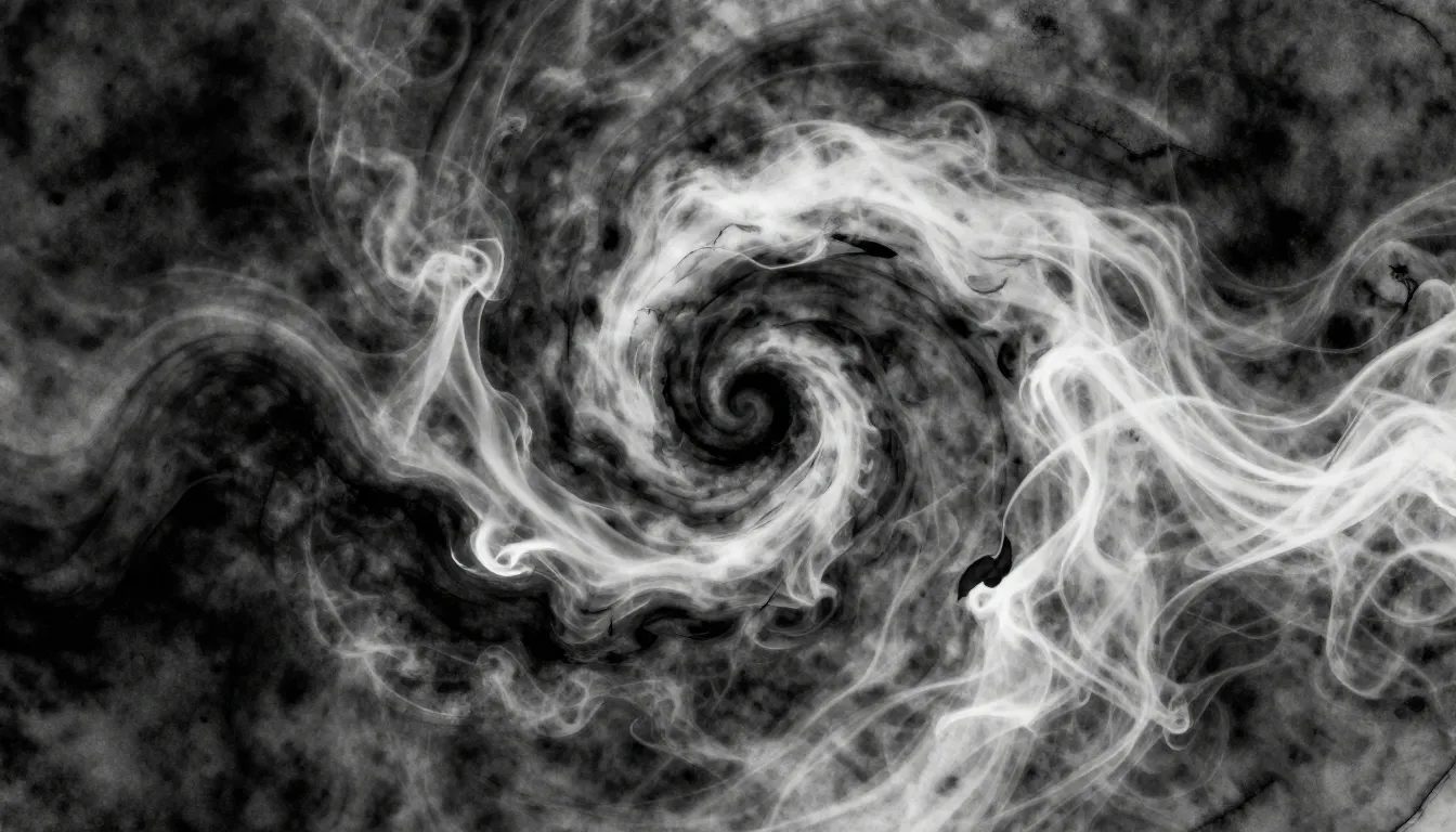 – Representasi artistik asap atau uap dalam bentuk abstrak yang mengalir dan elegan.
