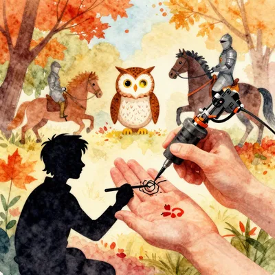 – Gambar orang-orang yang mendapatkan tato dengan tema musim gugur dan warna-warna cerah.