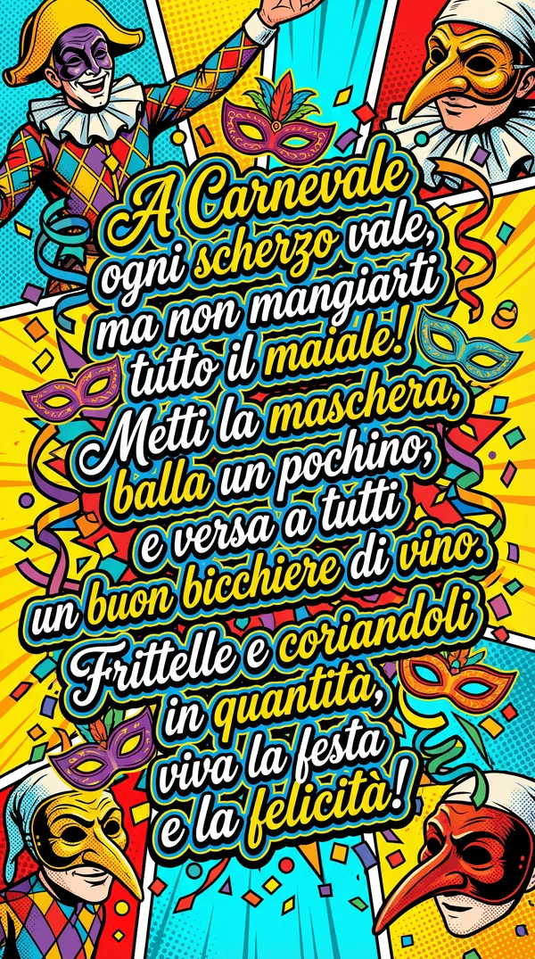 A Carnevale ogni scherzo vale, ma il mio augurio è speciale: un mondo di colori e tanta allegria!