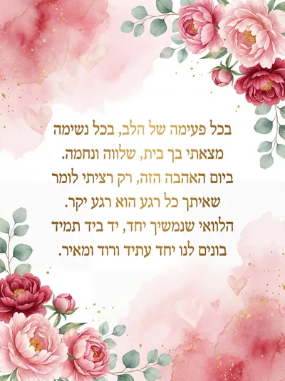 יום האהבה הגיע, מלא באור, את/ה בליבי, תמיד במקום הראשון. בכל מבט, בכל חיוך קטן, האהבה שלנו פורחת בכל זמן. תודה על כל רגע, על כל נשימה, את/ה המתנה הכי יפה בעולם, נשמה.