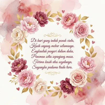 Cinta kita bagaikan bunga, Harum mewangi di dalam jiwa. Selamat Hari Kekasih buatmu sayang, Semoga bahagia kekal selamanya.