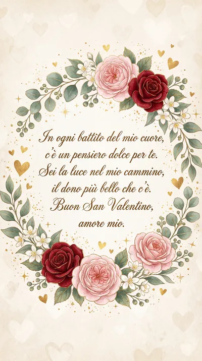 A volte le parole non bastano, ma un biglietto d'auguri romantico curato nei minimi dettagli può dire molto. Che tu stia festeggiando un anniversario, San Valentino o desideri semplicemente ricordare a qualcuno quanto sia importante per te, i nostri biglietti sono pensati per aiutarti a trasmettere il tuo affetto più profondo. L'amore è un viaggio meraviglioso fatto di piccoli gesti quotidiani e messaggi che scaldano l'anima. Fai risplendere il tuo amore e regala un'emozione indimenticabile alla tua dolce metà! ✨
